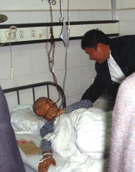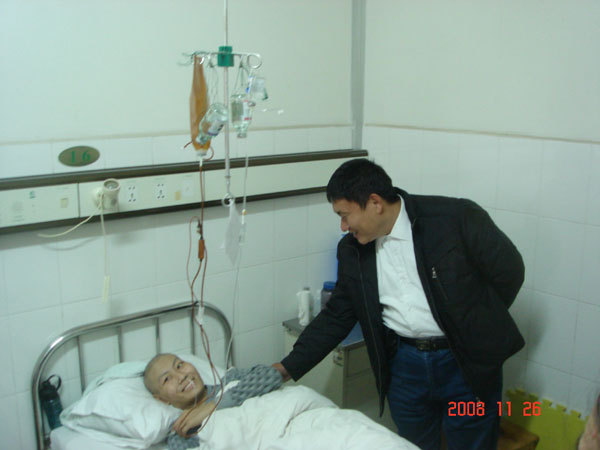 劉小龍,一個(gè)20歲的年輕小伙子,曾經(jīng)在公司車間工作。一個(gè)風(fēng)華正茂的年齡一個(gè)正是爭取自由的年齡,一個(gè)積極上進(jìn)勤奮好學(xué)的小伙子,不幸卻在今年八月中旬被檢查出得了白血病。多么令人可怕的字眼,多么令人討厭的病痛,但不幸確確實(shí)實(shí)在我們身邊發(fā)生了。病痛一天天在折磨他、在打擊他,拍片、輸血、輸液、化療......,父母的勞累自不必說,巨額醫(yī)療費(fèi)用也讓這個(gè)家庭難以承擔(dān)。24日晚全豐公司董事長王志國及工會(huì)主席陳志靜攜公司其他成員一行六人專程去醫(yī)院探望了劉小龍及其家人,這些情況全豐公司的領(lǐng)導(dǎo)看在眼里急在心里,看到自己的兄弟在忍受痛苦,領(lǐng)導(dǎo)們的心情非常沉重。