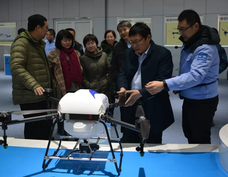 全豐董事長王志國向各位領(lǐng)導(dǎo)專家等講解全豐自由鷹多旋翼無人機