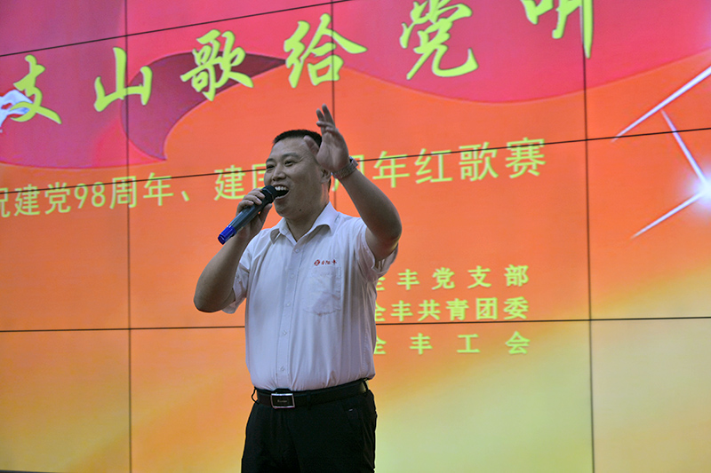 總結(jié)表彰會結(jié)束后,在全體人員高唱國歌《義勇軍進(jìn)行曲》的嘹亮歌聲中,慶祝建黨九十八周年紅歌賽拉開了下半場的序幕。此次紅歌賽分為集體賽和個人賽,共有七支參賽隊伍和四名獨唱分別角逐一二三等獎。從歌曲內(nèi)容、服裝隊形、演唱水平等方面進(jìn)行綜合評比打分。經(jīng)過激烈角逐,制劑分公司合唱《保衛(wèi)黃河》榮獲集體一等獎,航空和原藥分獲二三等獎。制劑分公司袁明演唱的《祖國慈祥的母親》榮獲個人賽第 一名,仝慧和周俊峰分獲二三名。