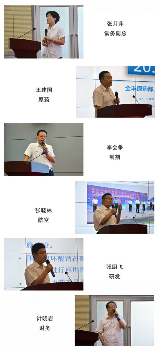 在述職環(huán)節(jié),原藥、制劑、航空、研發(fā)、財務(wù)、綜合等各分公司和部門第 一責(zé)任人依次進(jìn)行述職報告。原藥、制劑、航空還針對各自部門的銷售業(yè)務(wù)取得成績和團(tuán)隊建設(shè)等方面詳細(xì)進(jìn)行分析。